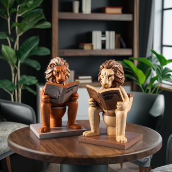 창조적 인 화장실 독서 사자 장식 레트로 미국 스타일 수지 공예 공부 방 홈 장식