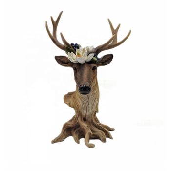 חדש דרום מזרח אסיה שרף מלאכות גבהה עם סגנון פרח ממדים צבי ראש הפסל צבי קישוט הבית קישוט מותאם אישית